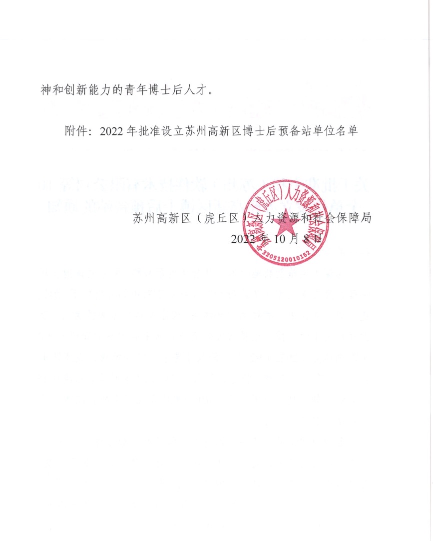 近日,苏州高新区(虎丘区)人力资源和社会保障局发布了2022年批准设立苏州高新区博士后预备站的单位名单,此次共批准设立10家,万店掌名列其中。