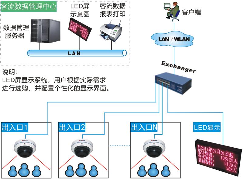 视频客流量统计系统的原理是基于嵌入式摄像镜头采集视频,然后对两个摄像头的视频图像进行视差计算,形成视频中人的3D图像,过对人体的形状和高度为分析目标,通过区域和方向的设定来统计通过人数。通过商场客流量的历史数据的对比,就可知道什么时间段的客流量变少,而在这个时间分析采用哪种营销方式可吸引增多客流量。