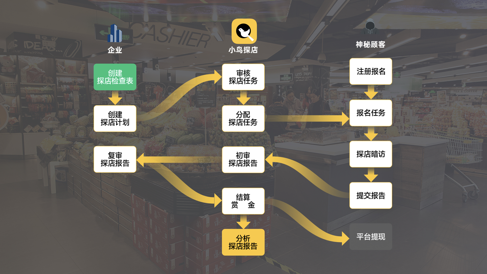 小鸟探店是专为零售连锁企业打造的神秘顾客暗访平台。