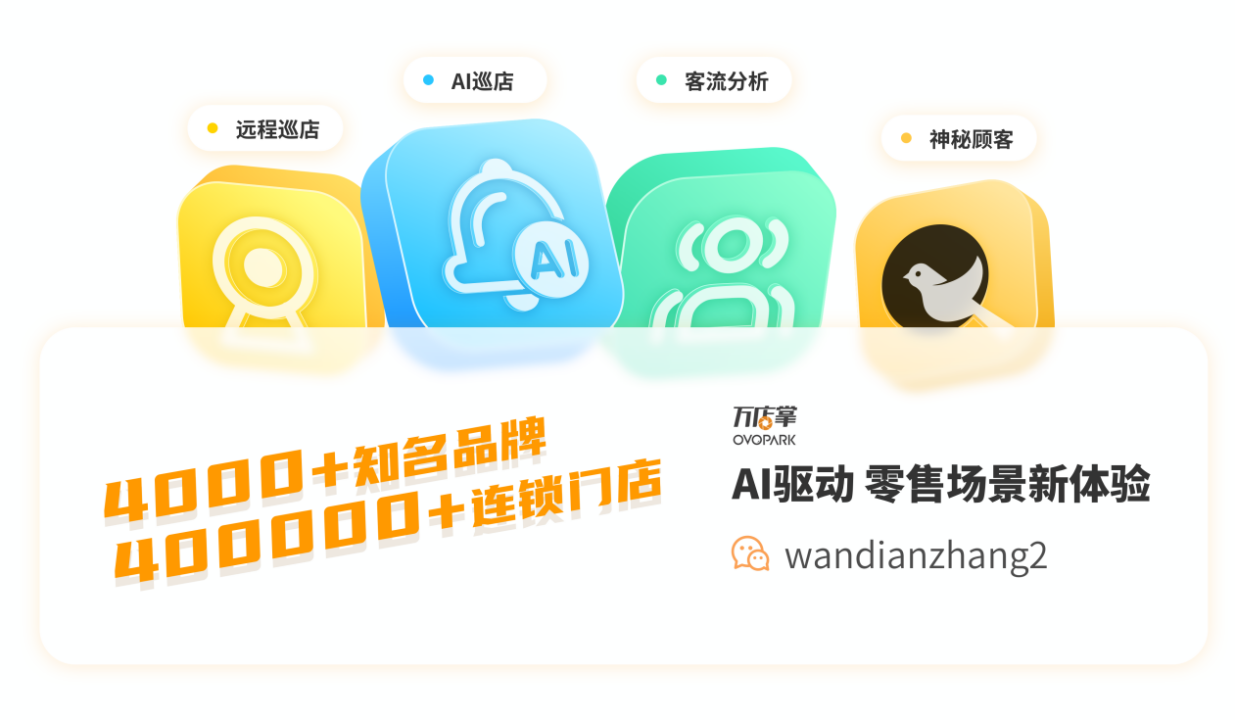 万店掌以AI场景识别+SaaS运营平台为架构基础,构建了高效巡店、神秘顾客、客流分析、AI分析、视频追溯、智能信发、数据分析等针对泛零售连锁企业的全链路数字化管理平台,并针对全行业提供开放平台。