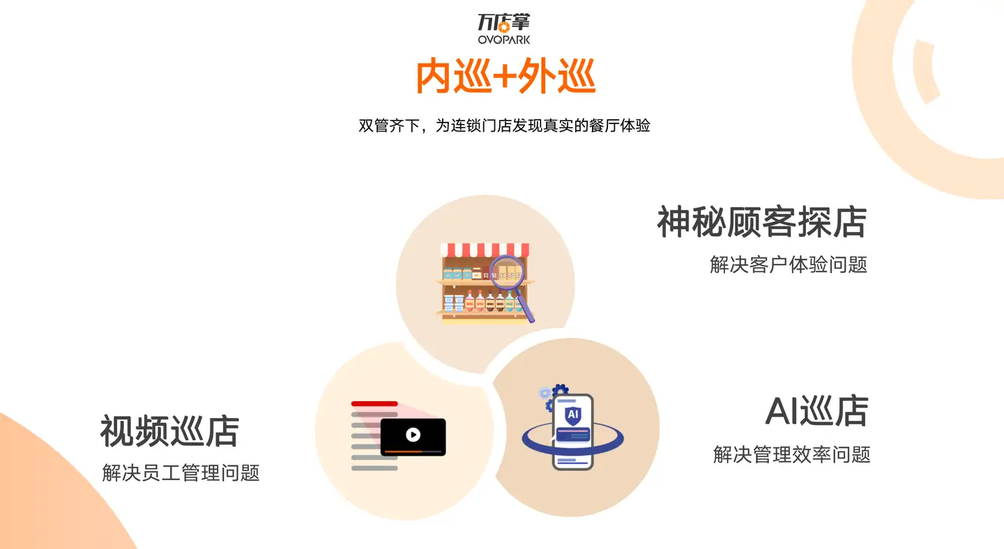 万店掌以AI场景识别+SaaS运营平台为架构基础,构建了高效巡店、神秘顾客、客流分析、AI分析、视频追溯、智能信发、数据分析等针对泛零售连锁企业的全链路数字化管理平台,并针对全行业提供开放平台。